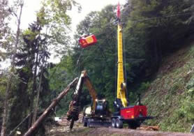 Für die Seilkräne verlassen wir uns auf unseren langjährigen österreichischen Geschäftspartner Konrad Forsttechnik AG, der einen selbstfahrenden Seilkran, den Woodliner, den Liftliner, der gleichzeitig hebt und fährt und den 2-teiligen Liftliner für Einsatz im Spezialgelände herstellt. Für den Woodliner liefern wir zudem Montageeinheiten in verschiedenster Ausführung, bei denen sich alles Notwendige für die Montage des Woodliners auf kleinstem Raum beisammen findet.. |